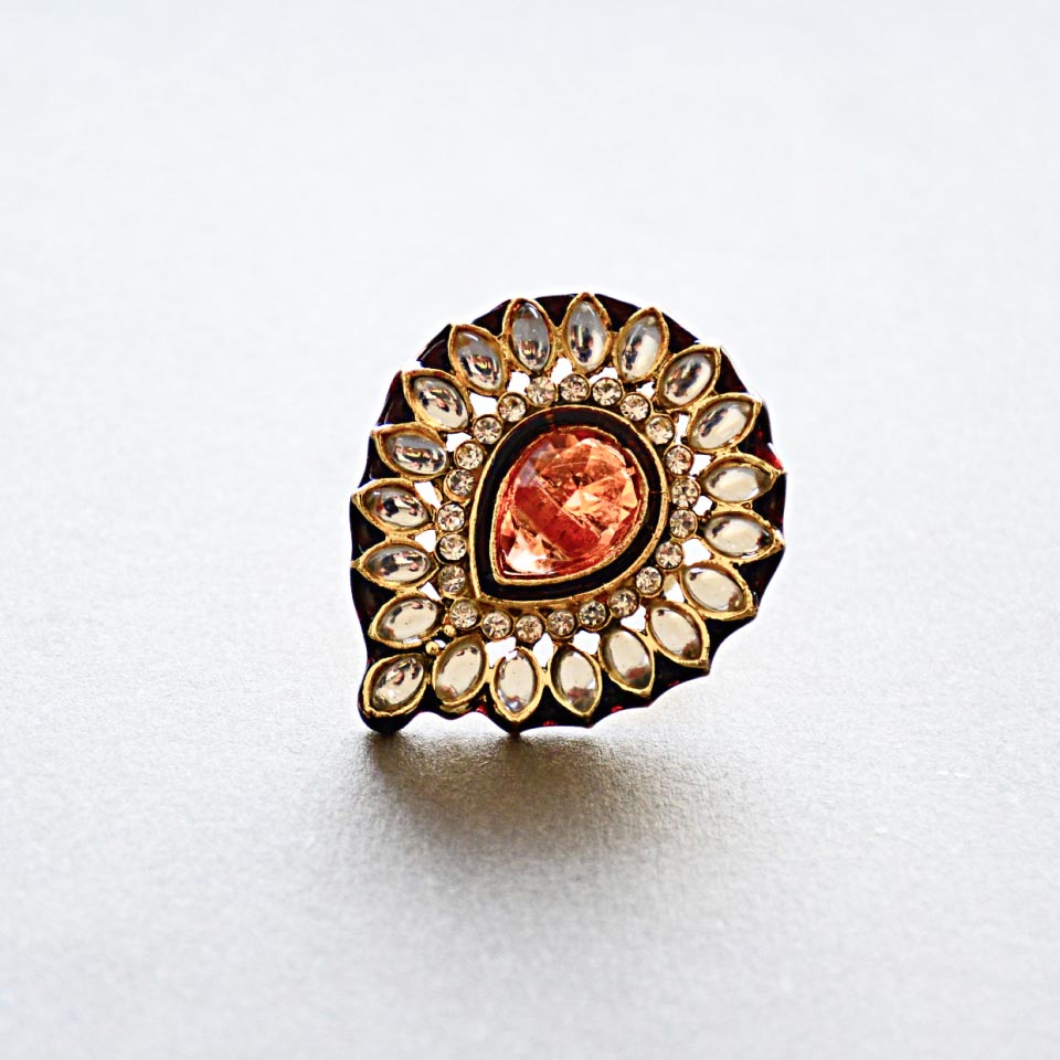 Anel brilhante com cristais e pedras preciosas.